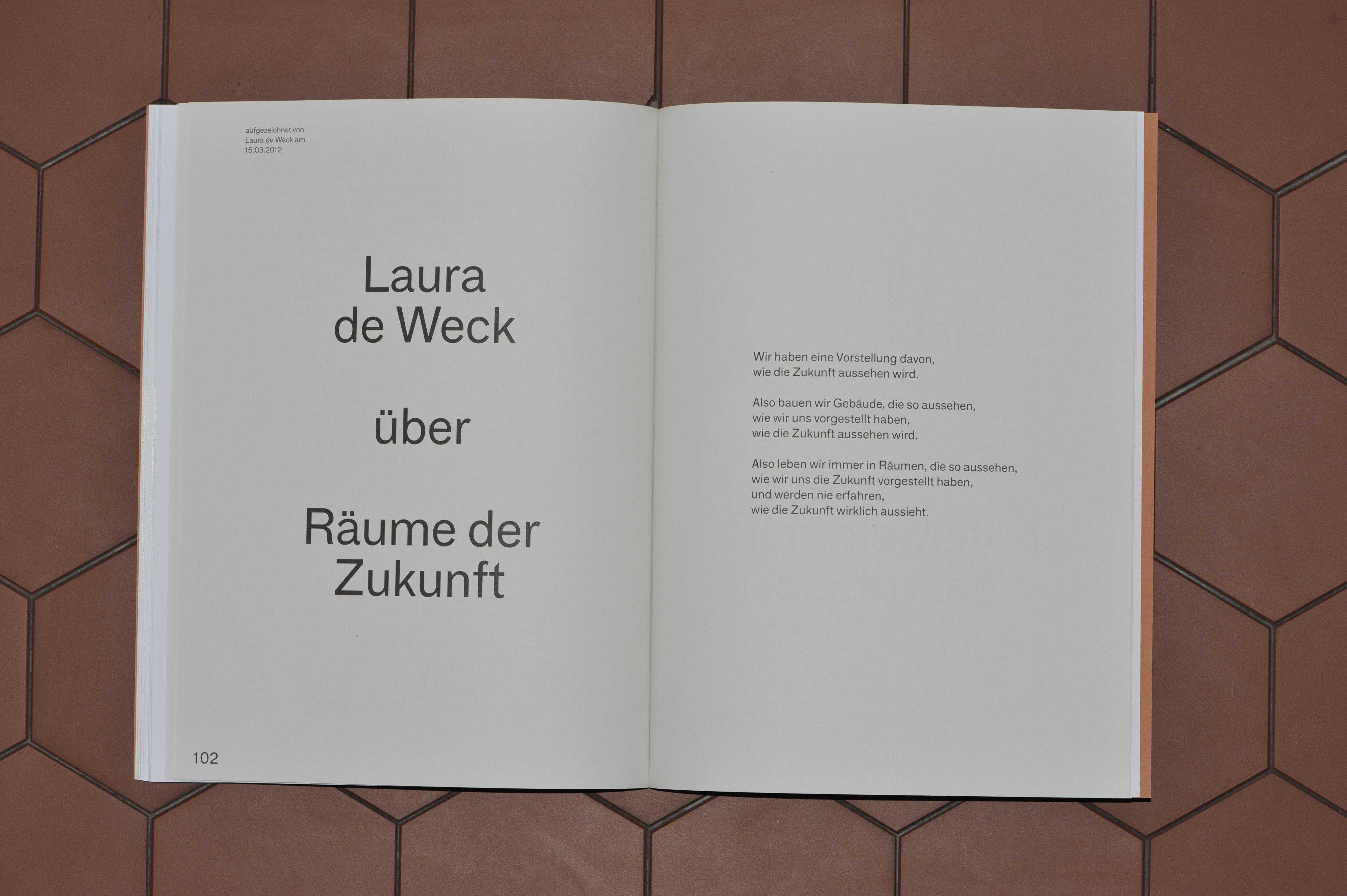 Text contributions: Laura de Weck, Christoph Gantenbein, Heike Munder, Philip Ursprung. Art contributions by: Esther Kempf, Kerim Seiler, Stefan Rusconi, Florian Graf, Beni Bischof, Huber.Huber.